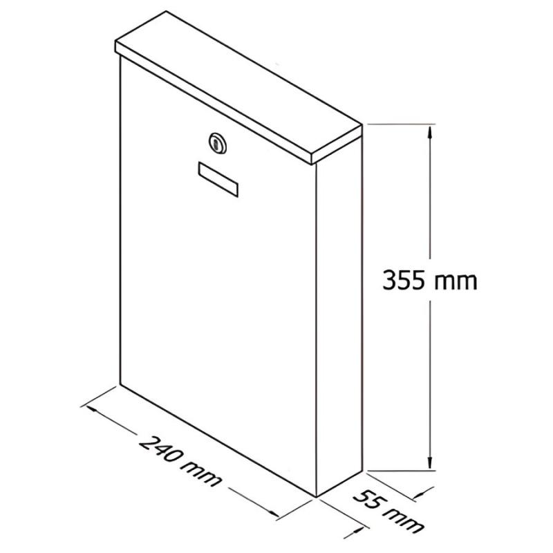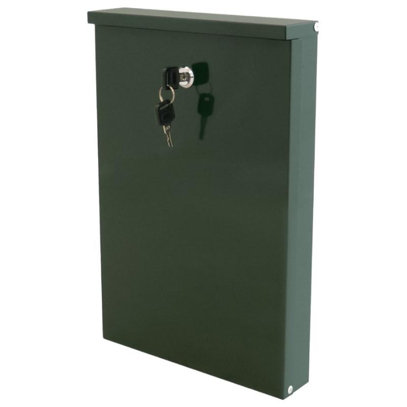 Zaļa pastkastīte, izmērs (G x P x A) 240 x 50 x 355 mm. Komplektā 2 atslēgas. Pastkastīte ne tikai nodrošina korespondences drošību, bet arī izdaiļo mājas fasādi, sētu, kāpņu telpu vai biroju. Lieliski piemērota lietošanai gan ārā, gan iekštelpās. Izgatavota no cinkota skārda, pulverkrāsota. Ir vieta, kur ierakstīt numuru, vārdu un uzvārdu.
