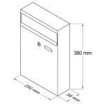 Zaļa pastkastīte, izmērs (G x P x A) 250 x 50 x 380 mm. Komplektā 2 atslēgas. Pastkastīte ne tikai nodrošina korespondences drošību, bet arī izdaiļo mājas fasādi, sētu, kāpņu telpu vai biroju. Lieliski piemērota lietošanai gan ārā, gan iekštelpās. Izgatavota no cinkota skārda, pulverkrāsota. Ir vieta, kur ierakstīt numuru, vārdu un uzvārdu.