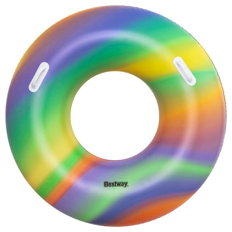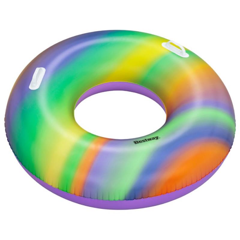 Bestway® Rainbow peldriņķis ir piemērots peldētājiem no 12 gadu vecuma. Peldriņķim ir izturīgi satvēršanas rokturi. To var arī viegli piepūst, izlaist un uzglabāt, lai ietaupītu vietu.