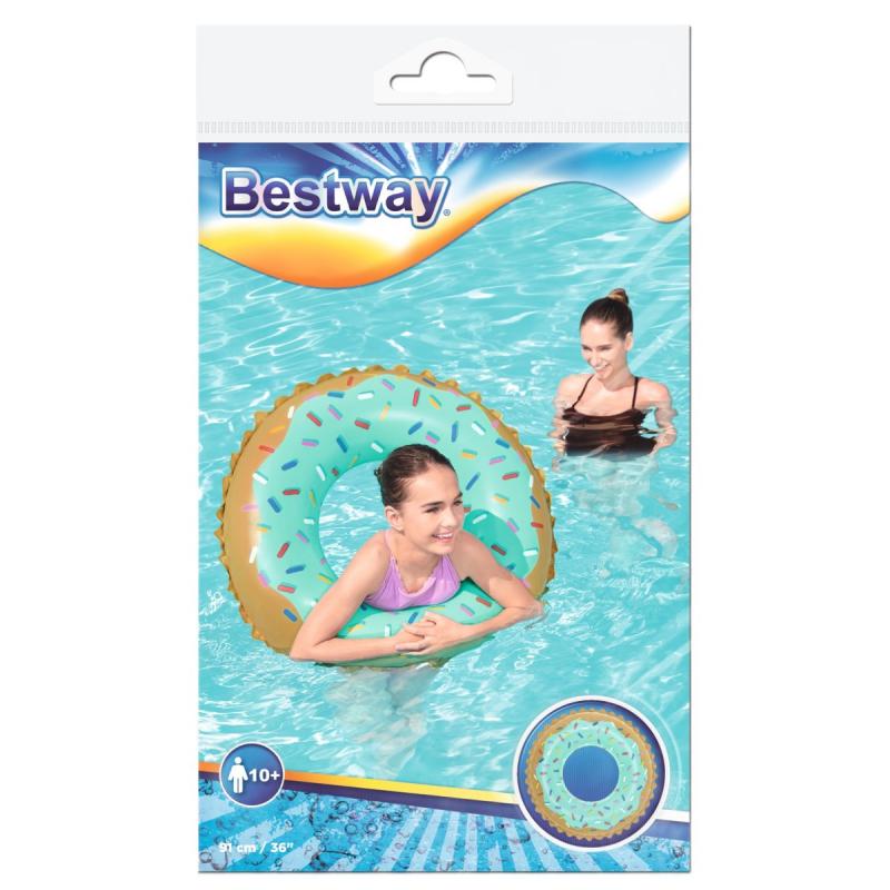 Bestway Sweet Donut peldriņķis ir izgatavots no izturīga materiāla un kalpos vairākas vasaras. To ir viegli piepūst, iztukšot un uzglabāt. Drošības vārsti vienmēr garantē nepieciešamo peldspēju, uzturot gaisa spiedienu.