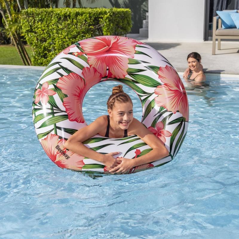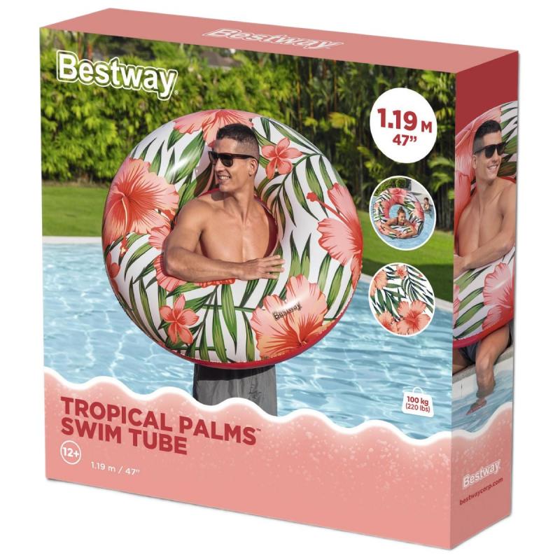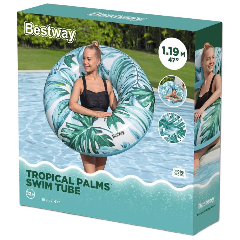Bestway® Tropical Palms peldriņķa spilgtās krāsas lieliski mirdz saulē. To ir viegli piepūst, iztukšot un uzglabāt.