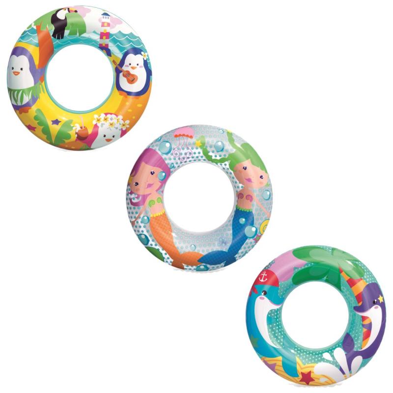 Bestway Sea Adventures peldriņķis bērniem no 3 līdz 6 gadu vecumam. Izgatavots no izturīga vinila. iebūvēts drošības vārsts vieglai piepūšanai, iztukšošanai un uzglabāšanai. Diametrs nepiepūsta veidā 51 cm, izmērs piepūstā veidā Ø 46 x 11 cm.