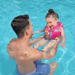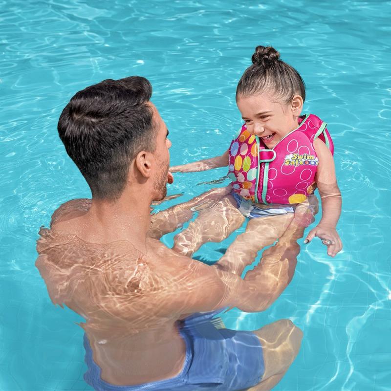 Bestway® Swim Safe ABC™ AquaStar™ peldveste ar tekstila pārklājumu ir ideāli piemērota bērniem no 1 līdz 3 gadiem, lai apgūtu peldēšanas pamatus un iegūtu drošību ūdenī. Šī peldveste ir daļa no Bestway® Swim Safe ABC™ mācību sērijas un piedāvā drošu un ērtu veidu, kā maziem bērniem attīstīt pārliecību ūdenī. Veste ir izgatavota no mīksta tekstila, iebūvētiem putu polsteriem, kas nodrošina gan komfortu, gan atbalstu, lai bērns justos droši. Vestei ir 2 regulējamas siksnas ar sprādzēm un izturīgs pašbloķējošs rāvējslēdzējs ar aizsargājošu pārklājumu. Tā piedāvā arī UPF 50+ saules aizsardzību, lai pasargātu bērnus no kaitīgiem UV stariem un novērstu krāsu izbalēšanu.