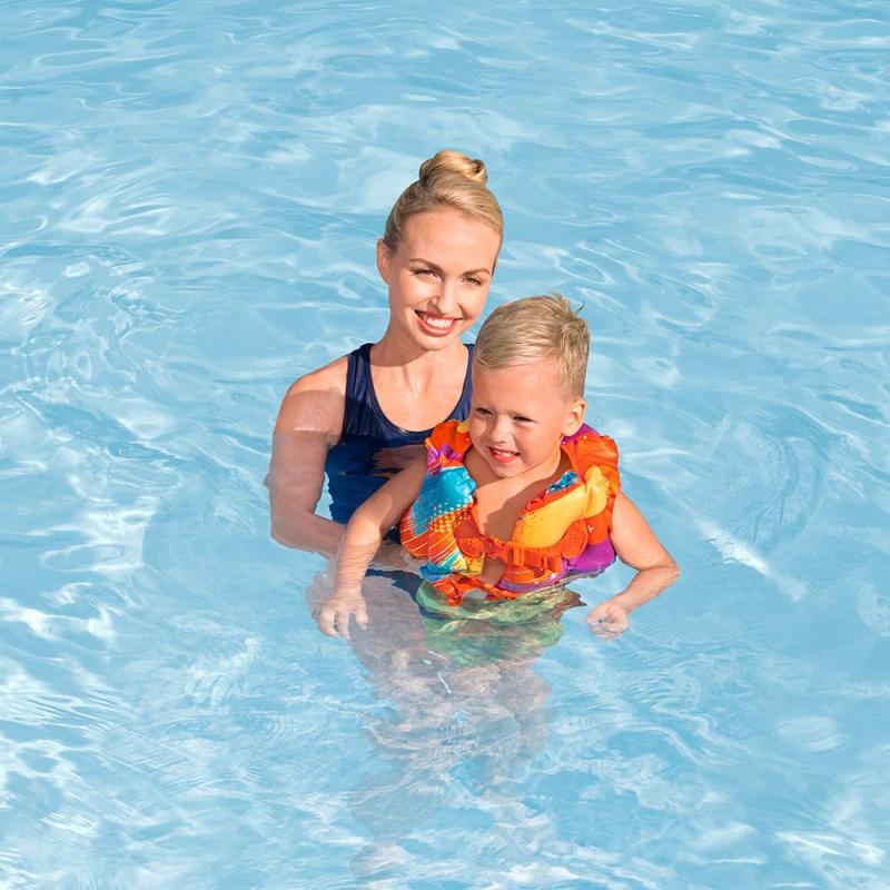 Bestway® Swim Safe ABC™ peldveste Colorify™ ir lielisks risinājums, lai nodrošinātu drošību un atbalstu bērniem vecumā no 3 līdz 6 gadiem, kuri mācās peldēt. Šī peldveste palīdz attīstīt bērnu pārliecību par savām spējām ūdenī. Izgatavota no izturīga un komfortabla ToughLite™ materiāla, šī veste ir ne tikai patīkama valkāšanai, bet arī ļoti ilgtspējīga un izturīga. Ar 2 regulējamām drošām sprādzēm un ātras pievienošanas sistēmu, peldveste ideāli pielāgojas bērna ķermenim.