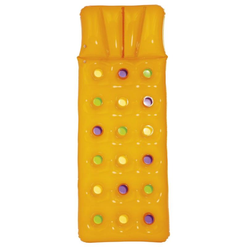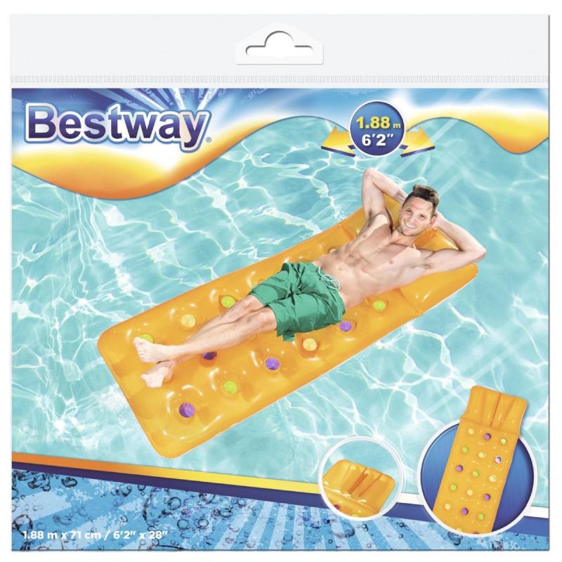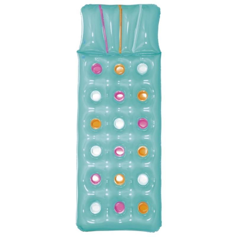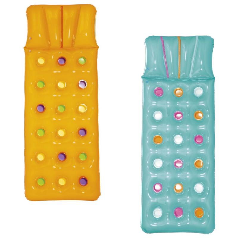 Piepūšamais matracis ar dažādu krāsu dobām kamerām, kas nodrošina īpašu komfortu un dzesēšanu. Integrētais spilvens ar iekšējo atbalsta konstrukciju padara šo piepūšamo matraci ne tikai ērtu, bet arī ārkārtīgi praktisku. Jūs varat sēdēt un pilnībā izbaudīt sauli, nezaudējot komfortu. Bestway® Summer Colors™ matraci var ātri piepūst un viegli transportēt, un uzglabāt.