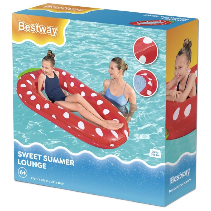 Bestway® Sweet Summer™ piepūšamais matracis paredzēts bērniem no 6 gadu vecuma. Matracis ir aprīkots ar sieta pamatni, kas nodrošina papildu komfortu. To var viegli uzpūst, izlaist un uzglabāt.