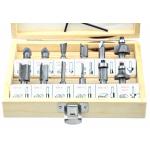 Profilfrēžu komplekts kokam ar 8 mm savienojumu. Piemērotas masīvkoka, skaidu plātņu, MDF un citu koksnes materiālu apstrādei. Izmantotie gultņi samazina rites pretestību, tāpēc frēzes ir ideāli piemēroti apaļa materiāla formēšanai. Viss ir ievietots praktiskā koka kastītē. Komplektā 12 frēzes, Hex atslēga.