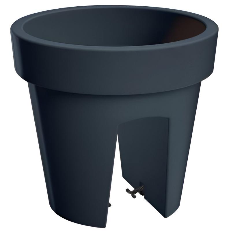 Antracīta krāsas puķu pods Lofly. Šis plastmasas dekoratīvais pods ir viegls, stabils, izturīgs pret skrāpējumiem un triecieniem. Puķu podu ir ļoti viegli piestiprināt pie margām, pateicoties padziļinājumam un īpašiem rokturiem. Aizņem vietu abās margu pusēs. Piemērots lietošanai gan iekštelpās, gan ārā. Izmērs (D x A) 24 x 22 cm.