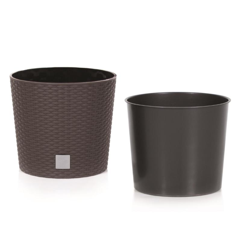 Dekoratīvais puķu pods Rato ir elegants risinājums augu izvietošanai gan iekštelpās, gan ārpus tām. Tā dizains atdarina dabīgās rotangas pinuma tekstūru, piešķirot tam mūsdienīgu un eksotisku izskatu. Puķu pods ir izgatavots no augstas kvalitātes plastmasas brūnā krāsā, kas nodrošina izturību pret UV starojumu un nelabvēlīgiem laikapstākļiem. Komplektā ietilpst izņemams ieliktnis, kas atvieglo augu stādīšanu un kopšanu. Šis puķu pods ir lieliski piemērots dažādu augu, piemēram, ziedu, garšaugu vai dekoratīvo augu, audzēšanai. Izmērs (D x A) 25 x 22 cm, tilpums 7.5 l.