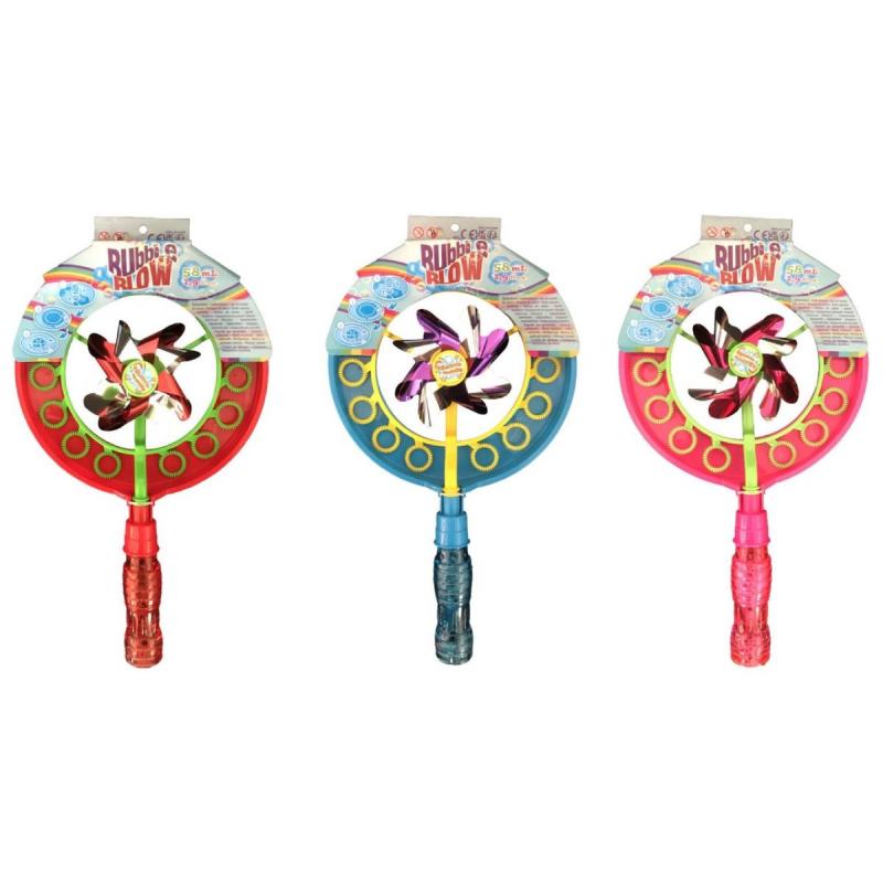 Burbuļu pūšamās vējdzirnavas ir rotaļlieta, kas apvieno krāsainu vējdzirnavu un ziepju burbuļu pūšamo, radot īpaši aizraujošu spēli bērniem svaigā gaisā. Vējdzirnavu rotējošie spārni un daudzie burbuļu gredzeni veido virkni mirdzošu burbuļu, kad bērns rotaļlietu kustina vai skrien, tādējādi veicinot kustību aktivitāti un koordināciju. Rotaļlieta ir lieliski piemērota dārza spēlēm, izklaidei parkā vai bērnu ballītēs, jo rada vizuāli iespaidīgu un jautru atmosfēru. Komplektā ir burbuļu šķidrums, lai rotaļlietu varētu lietot uzreiz pēc iegādes. Tilpums 58 ml.