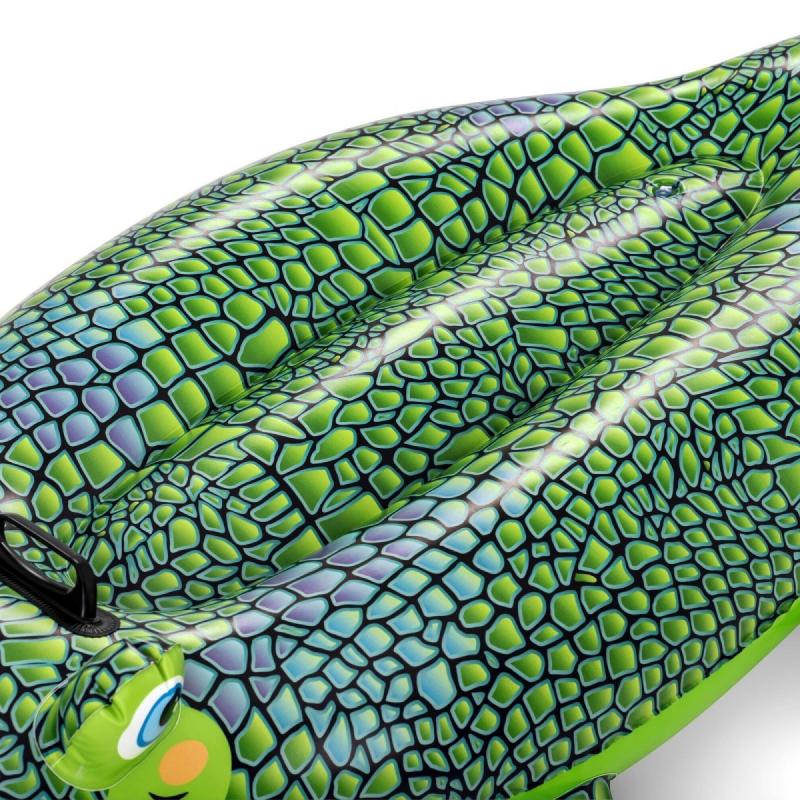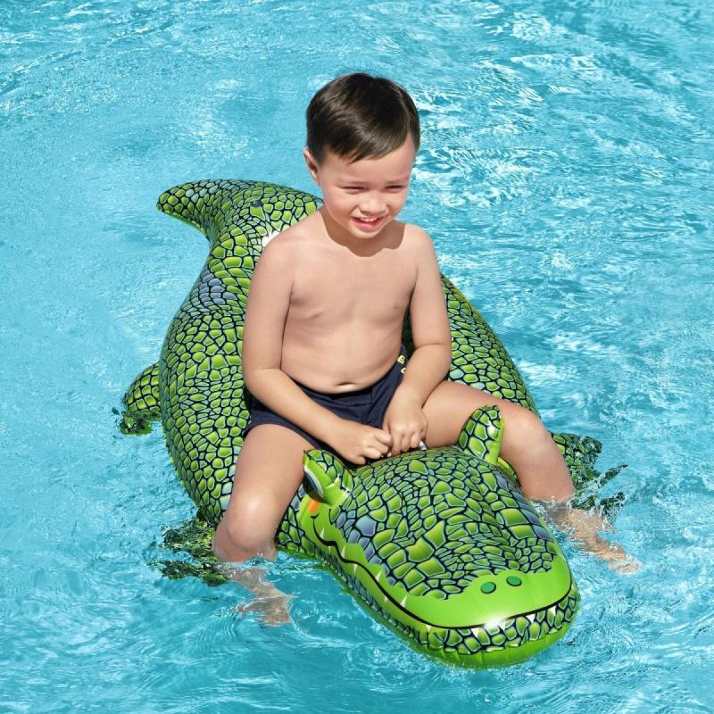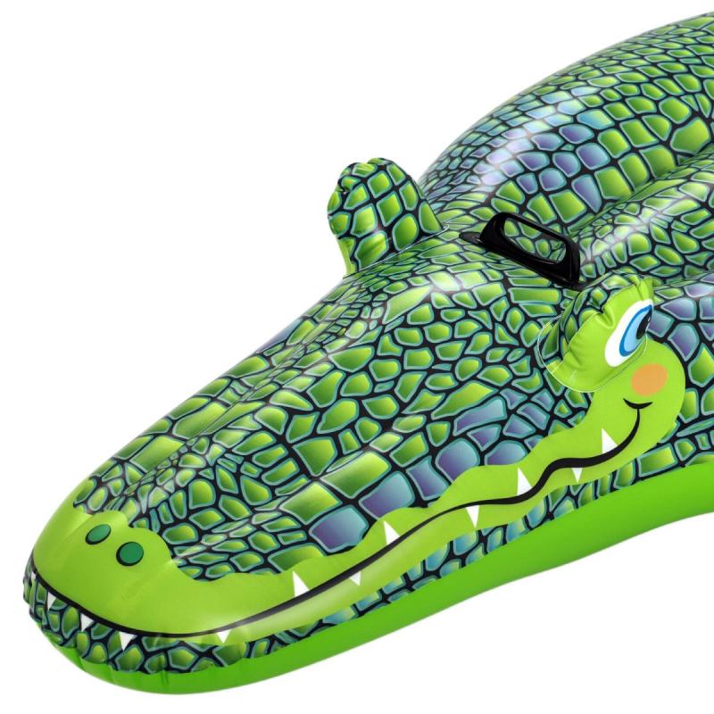 Bestway® Buddy Crocodile™ piepūšamā rotaļlieta ir lielisks ūdensdraugs bērniem no 3 gadu vecuma. Ar draudzīgu krokodila dizainu tā piedāvā stundām ilgu izklaidi, ļaujot mazajiem piedzīvojumu meklētājiem droši peldēt un spēlēties. Izgatavota no izturīga PVC materiāla, šī rotaļlieta spēj izturēt līdz pat 45 kg svaru. Divas gaisa kameras nodrošina stabilitāti uz ūdens, savukārt ērts un izturīgs rokturis palīdz bērniem droši noturēties uz krokodila muguras. Pateicoties drošības vārstiem, piepūšana un iztukšošana ir ātra un vienkārša. Komplektā iekļauts arī remonta ielāps.