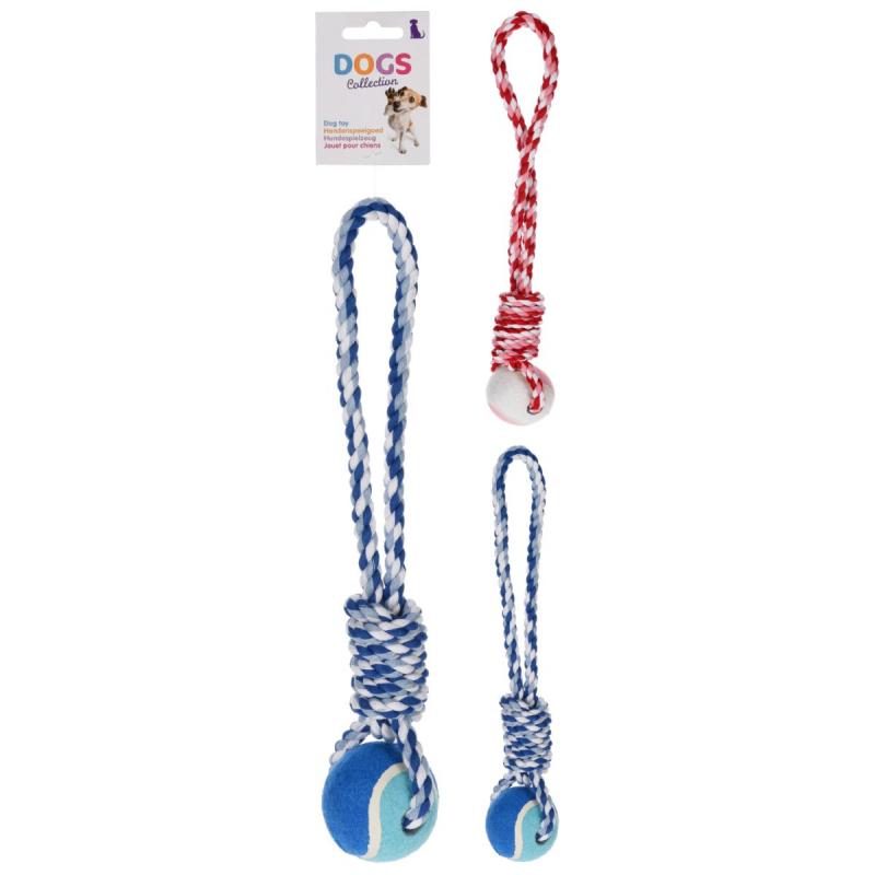Rotaļlieta suņiem bumba ar virvi ir lieliski piemērota gan vilkšanas, gan mešanas spēlēm, kas palīdz uzturēt suni fiziski aktīvu un nodrošina jautru laika pavadīšanu kopā ar saimnieku. Izturīgā virve nodrošina ērtu satvērienu un palīdz precīzāk mest bumbu lielākā attālumā. Tenisa tipa bumbiņa ir piemērota košļāšanai un spēlēm, kas attīsta dzīvnieka instinktus. Rotaļlieta ir izgatavota no drošas un izturīgas virves, kas piemērota ikdienas lietošanai dažāda izmēra suņiem. Tā ir viegla un ērti pārnēsājama pastaigu laikā.