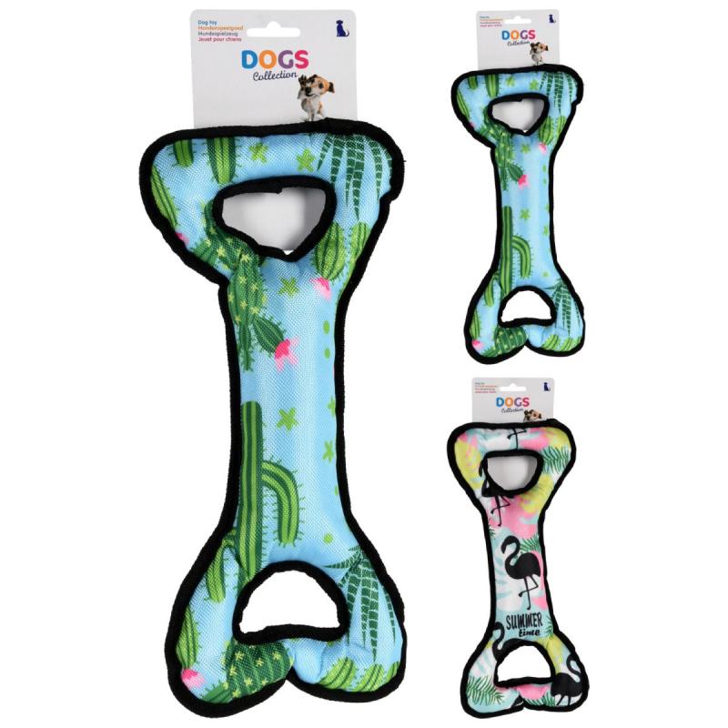 Rotaļlieta suņiem kauls ir izturīga un vizuāli pievilcīga mīkstā rotaļlieta, kas piemērota gan košļāšanai, gan vilkšanas spēlēm. Ergonomiskais dizains ar atvērumiem abos galos nodrošina ērtu satvērienu sunim un saimniekam, veicinot aktīvu rotaļu. Rotaļlieta izgatavota no izturīga poliestera materiāla, kas piemērots intensīvai lietošanai un ir viegli tīrāms. Tā ir piemērota gan mazākiem, gan vidēja izmēra suņiem un sniedz iespēju izklaidēties gan iekštelpās, gan ārā. Pievilcīgais dizains padara šo rotaļlietu par jautru papildinājumu jebkurai suņu rotaļlietu kolekcijai.