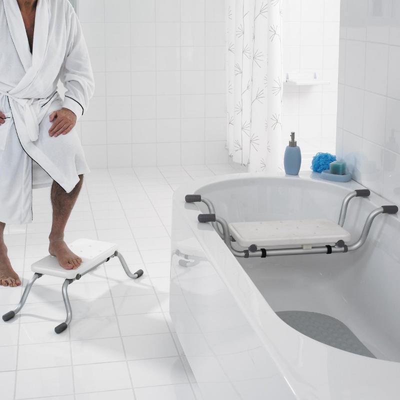 Lielisks palīgs vannas istabā senioriem vai cilvēkiem, kuriem nepieciešama palīdzība mazgāšanās laikā, vai vienkārši ērts sēdeklis losjona uzklāšanas vai skūšanās laikā. Piemērots arī kā pakāpiens bērniem, lai aizniegtu izlietni. Vizuāli iederēsies jebkurā vannas istabā. Neslīdoša virsma, gumijas uzmavas uz kājām nodrošina stabilitāti un aizsargā vannu no skrāpējumiem. Piemērots izplatītākajiem vannu platumiem. Izgatavots no alumīnija un polietilēna (PE). Sēdvietas izmērs aptuveni 41.2 x 22.3 cm, kopējais izmērs aptuveni 73 - 83 x 31 x 21 cm. Maksimālais pieļaujamais lietotāja svars 100 kg.