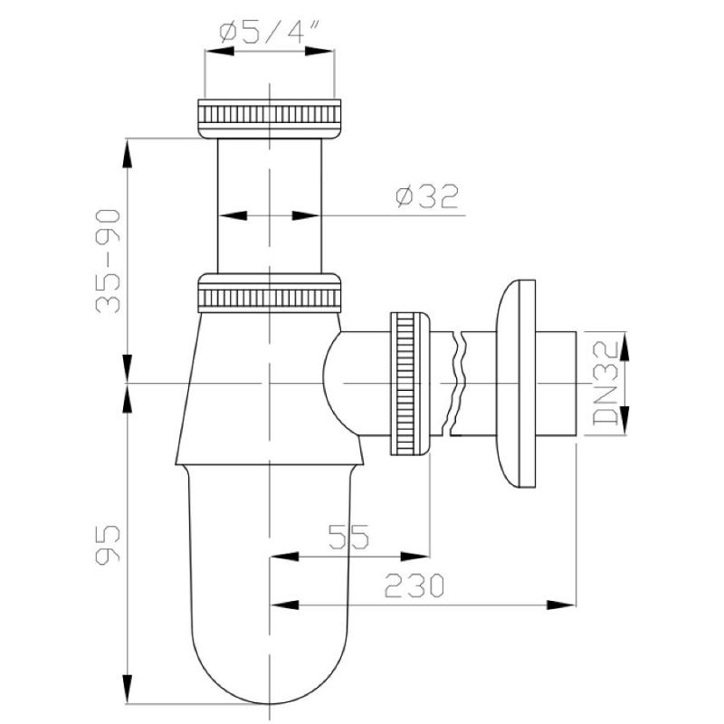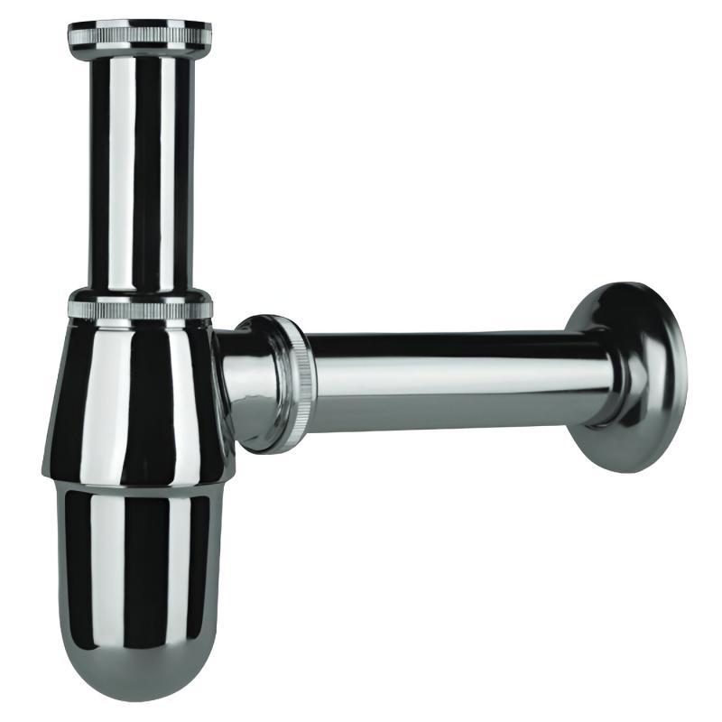 PLASTBRNO hromētais sifons EMCR001 ir izturīgs un vizuāli pievilcīgs risinājums, kas piemērots atklātai uzstādīšanai zem izlietnes – ideāli vannas istabām ar akcentētu dizainu. Tas paredzēts pieslēgšanai pie izlietnes ar 1 1/4 collu vītni un ir aprīkots ar 32 mm diametra izvada cauruli kanalizācijai. Izliektais korpuss ar regulējamu augstumu no 35 līdz 90 mm nodrošina pielāgojamību dažādiem montāžas augstumiem, savukārt garums līdz sienas pieslēgumam ir 230 mm. Hromētais metāla pārklājums piešķir sifonam spīdīgu, modernu izskatu, vienlaikus nodrošinot ilgmūžību un aizsardzību pret koroziju.