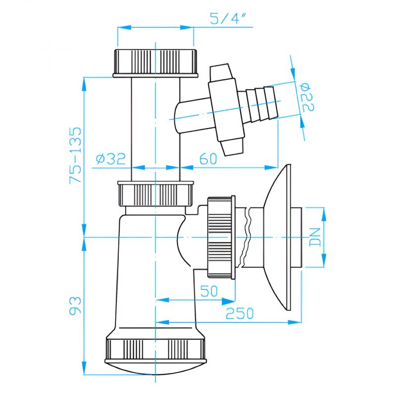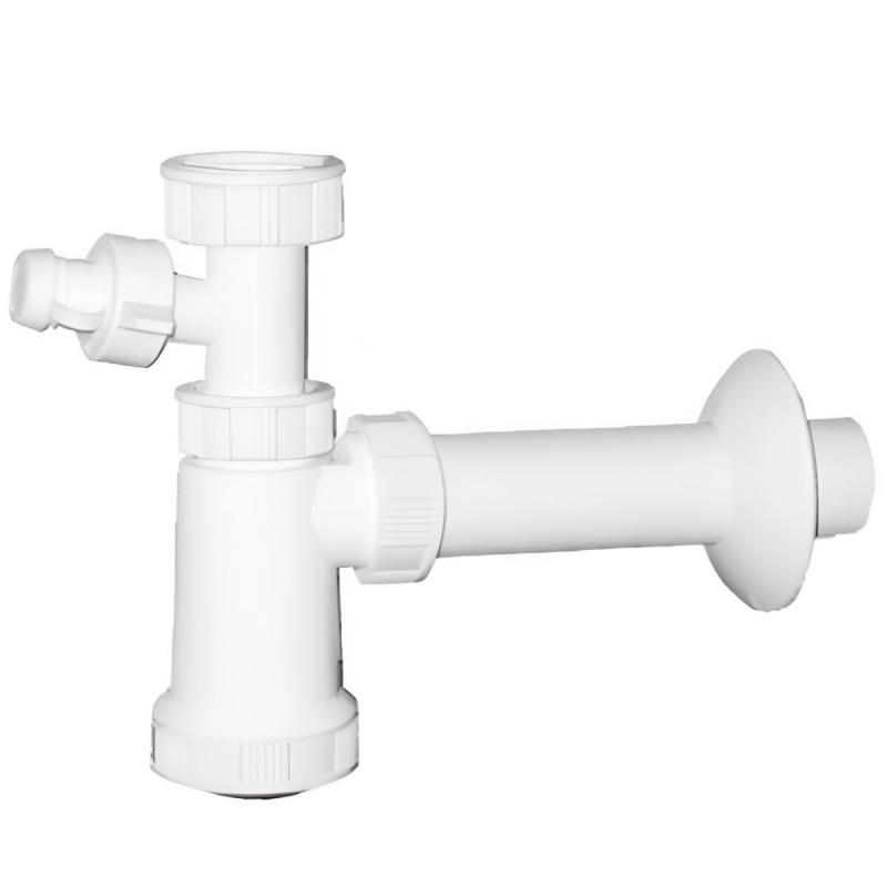 PLASTBRNO plastmasas sifons EM05330 ir daudzpusīgs un funkcionāls risinājums izlietnēm, kam nepieciešams papildus pieslēgums veļas vai trauku mazgājamajai mašīnai. Sifons paredzēts pieslēgšanai pie izlietnes ar 1 1/4 collu vītni un aprīkots ar 32 mm diametra izvada cauruli kanalizācijai, kā arī ar atsevišķu 22 mm diametra pieslēgvietu ierīces notekūdens novadei. Augstums regulējams no 75 līdz 135 mm, un izvada garums sasniedz līdz 250 mm, nodrošinot ērtu un pielāgojamu uzstādīšanu. Baltā plastmasa un kompaktais dizains ļauj to viegli integrēt dažādās vannasistabas vai virtuves konfigurācijās.