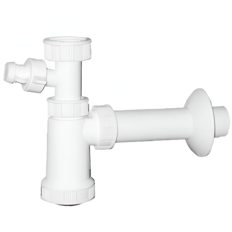 PLASTBRNO izlietnes sifons EM15340 ir praktisks un kompakts risinājums efektīvai ūdens novadīšanai, kas aprīkots ar papildu pieslēgumu veļas vai trauku mazgājamās mašīnas šļūtenei. Vertikālais pieslēgums ar 5/4” vītni un 32 mm diametru ir paredzēts uzstādīšanai zem izlietnes, bet horizontālā izplūdes caurule ar 40 mm diametru nodrošina savienojumu ar kanalizācijas sistēmu. Konstrukcijā iekļauts konisks pieslēgums ar Ø 22 mm diametru un 60 mm garumu sadzīves tehnikas pievienošanai. Sifona augstums ir regulējams no 75 līdz 135 mm, kopējais izplūdes garums 250 mm. Pateicoties kompaktajiem izmēriem un ērtai montāžai, tas ir piemērots mūsdienīgiem mājokļiem ar ierobežotu vietu zem izlietnes.