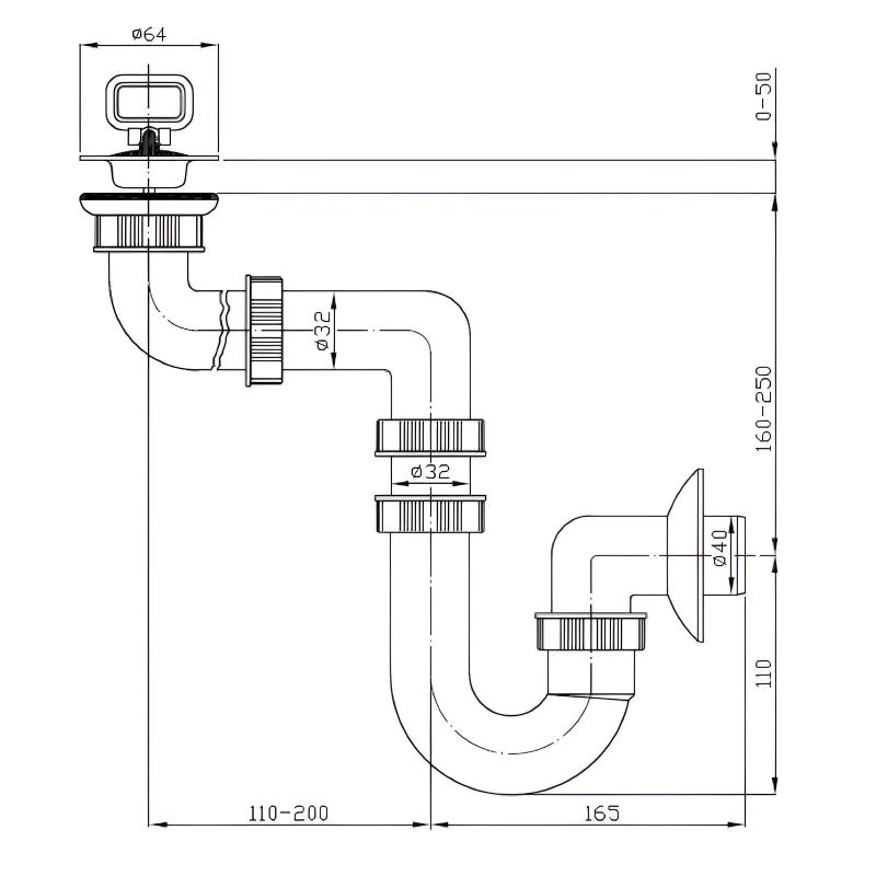 PLASTBRNO U-veida sifons izlietnei ir uzticams risinājums efektīvai ūdens novadīšanai vannas istabā vai virtuvē. Izgatavots no izturīgas baltas plastmasas, tas piemērots 1 1/4" izlietnes izvadiem un pieslēgumam ar Ø 40 mm cauruli. Sifons aprīkots ar Ø 64 mm aizbāzni un regulējamu konstrukciju (augstums 160 – 250 mm, dziļums 110 – 200 mm), kas ļauj to viegli pielāgot dažādiem montāžas apstākļiem. Ø 32 mm savienojuma daļas un U-veida izliekums nodrošina drošu ūdens aizturi un aizsardzību pret smakām. Ideāli piemērots gan remontdarbiem, gan jaunu santehnikas iekārtu uzstādīšanai.