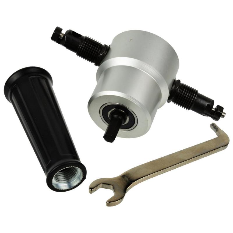 Piederums urbjmašīnai lokšņu metāla griešanai. Šāda veida ierīces bieži izmanto automašīnu virsbūvju veikalos. Pielāgots urbjiem ar ātrumu, kas nepārsniedz 3000 apgr./min. Titāna pārklājumu asmens. Iespēja mainīt griešanas leņķi par 360°, piemērots labročiem un kreiļiem.