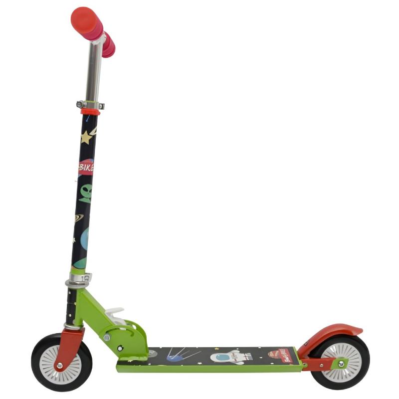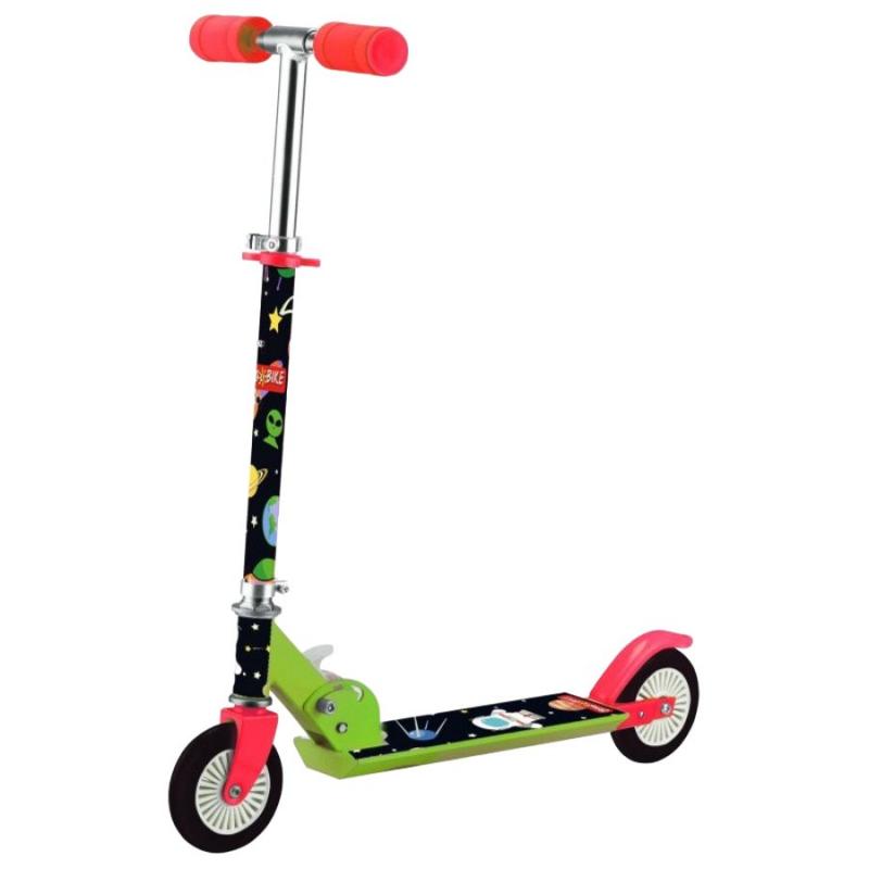 Bērnu skūteris Cosmos ir krāsains un stabils skrejritenis aktīvām pastaigām un braucieniem pa pagalmu vai parku. Zaļi sarkanā konstrukcija ar kosmosa tematikas uzlīmēm piesaista bērnu uzmanību un padara katru braucienu aizraujošu, vienlaikus motivējot vairāk kustēties svaigā gaisā. Regulējamā T veida stūre ļauj pielāgot skūteri bērna augumam, tāpēc tas ir piemērots dažāda vecuma lietotājiem un aug kopā ar bērnu. Lielie riteņi nodrošina vienmērīgu un ērtu braukšanu pa pilsētas trotuāriem un gludām virsmām, bet izturīgā tērauda un alumīnija konstrukcija kopā ar PP, PVC un EVA elementiem sniedz stabilitāti un drošību ikdienas lietošanā. Skūteris paredzēts bērniem ar augumu no 100 līdz 160 cm un vecumu no 5 gadiem, maksimālais lietotāja svars 50 kg, skūtera izmērs 66 x 32 x 81 cm. Produkts sertificēts CE un atbilst EN71-1/2/3 drošības standartiem.