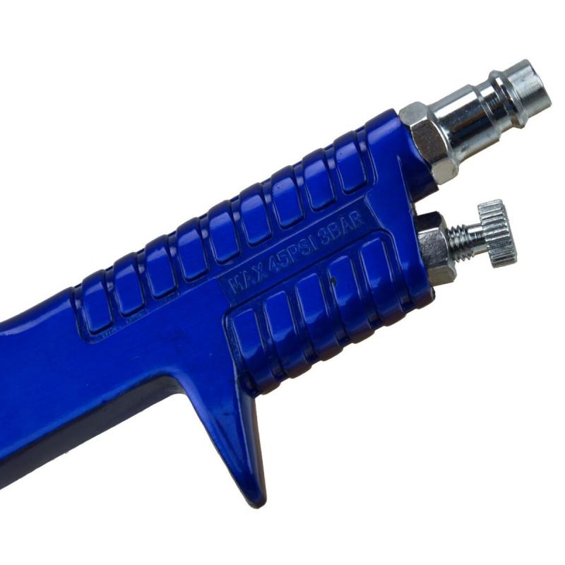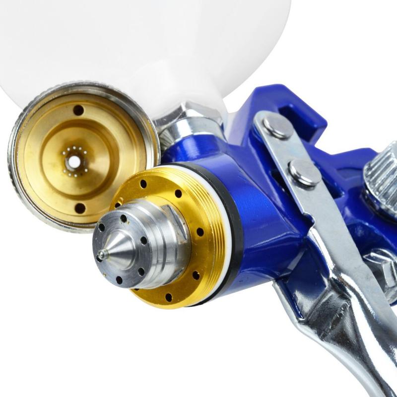 Augstas veiktspējas gravitācijas padeves HVLP smidzināšanas pistole. Ideāli piemērota lietošanai ar lakām, emaljām, traipiem, uretāniem un ātri žūstošām un zemas viskozitātes krāsām. Ātra un vienkārša tīrīšana ar komplektā iekļauto tīrīšanas birsti un vairāku uzgriežņu atslēgu izjaukšanai.