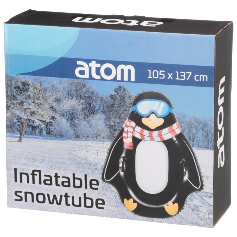 Atom piepūšamais sniega pūslis Pingvīns ir jautrs un ērts ziemas braucamais aizraujošiem nobraucieniem no kalniņa. Pingvīna formas dizains ar košām detaļām patiks gan bērniem, gan pieaugušajiem un piešķirs ziemas izklaidēm īpašu noskaņu. Vieglā konstrukcija ļauj to viegli nest atpakaļ kalnā un pēc sezonas izlaist gaisu, salocīt un uzglabāt pat ļoti nelielā vietā. Izturīgie rokturi nodrošina drošu satvērienu brauciena laikā, bet gludā virsma palīdz sasniegt ātru un vienmērīgu slīdēšanu pa sniegu. Materiāls PVC, materiāla biezums 0.4 mm, izmērs 105 x 137 cm.