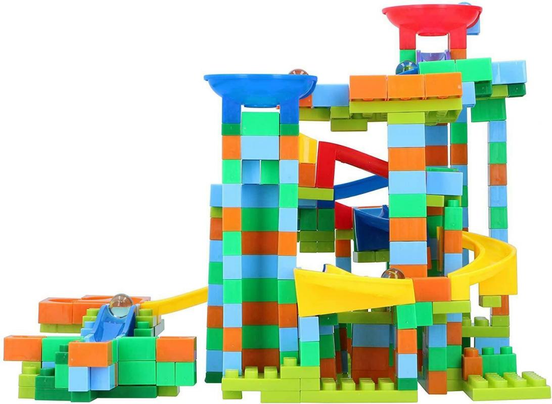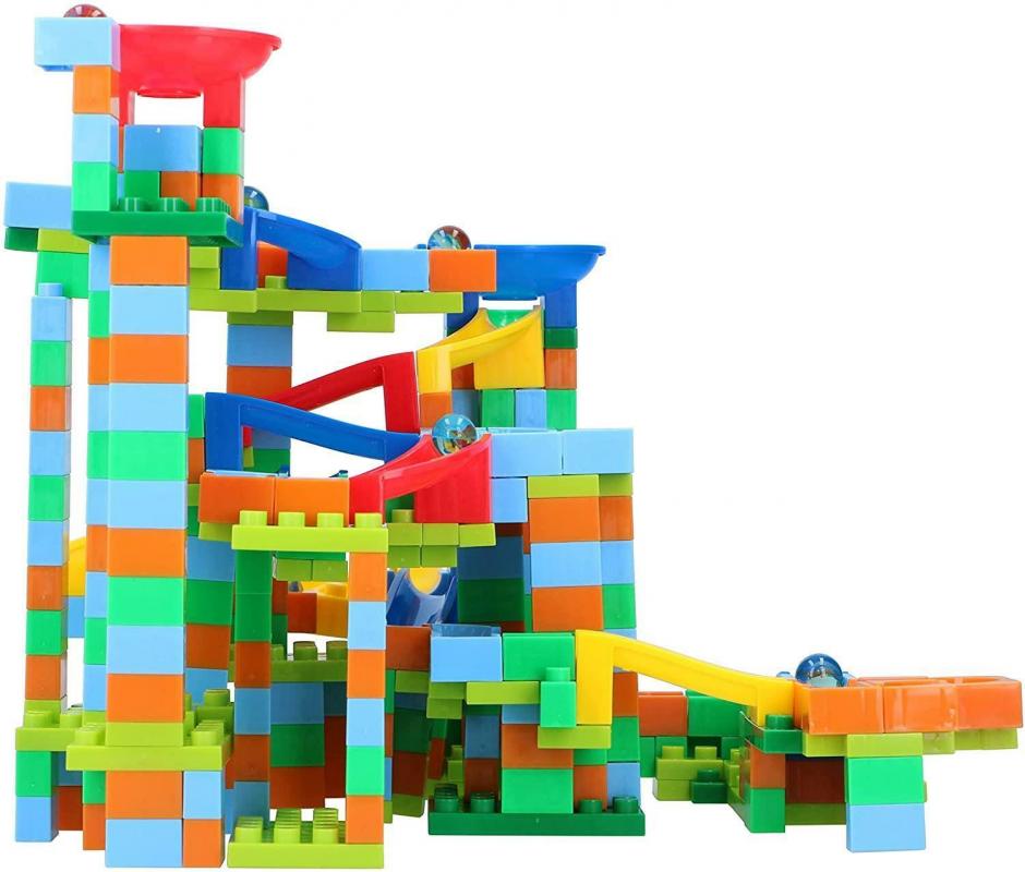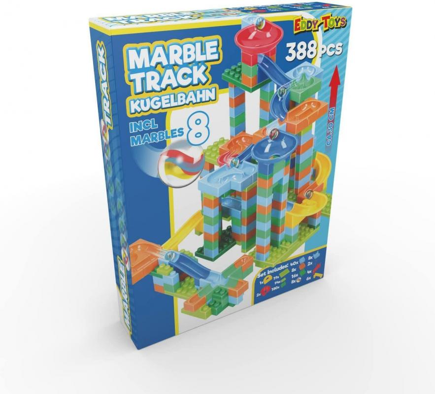 388 detaļu komplekts sastāv no 8 bumbiņām un 380 dažādu krāsu, formu un izmēru celtniecības blokiem. Jums ir dažāda veida līknes, pamatnes un bloki dzeltenā, sarkanā, zaļā, oranžā un zilā krāsā. Varat tos izmantot, lai izveidotu dažādas aptuveni 30 cm augstas trases. Izgatavots no plastmasas polistirola. Piemērots bērniem no 3 gadu vecuma.