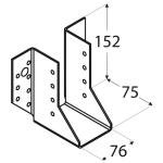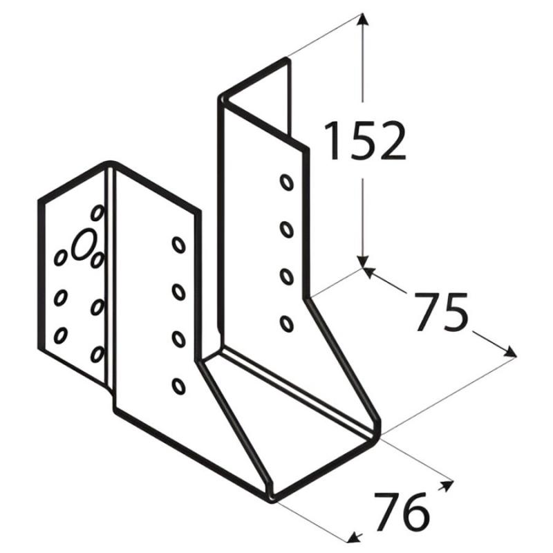 Standarta siju piekares elementi, kas nodrošina montāžu bez atstarpes starp savienotajiem elementiem. Papildu lielais atvēruma diametrs padara tos izmantojamus siju stiprināšanai pie betona sienas. Izgatavots no cinkota tērauda DX51D + Z275, biezums 2 mm. Piemērotie stiprinājumi - galdniecības enkurnaglas ø 4 mm, kokskrūves ø 10 mm, skrūves M10, betona enkuri M10. Nestspēja un noturība 25.45 kN. Izmērs 75 x 76 x 152 x 2 mm.