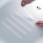 Pretslīdes sloksnes izgatavotas no 100% PEVA (polietilēna vinilacetāta). Tās ir ādai draudzīgas un nepastāv kontakta alerģiju riska, jo tās nesatur PVC, lateksu, svinu un ftalātus. Sloksnes nodrošina drošu noturēšanos, pateicoties stingrai un raupjai virsmai. Piemērotas visu vecumu un svara kategorijām, kā arī dzīvniekiem. Tās var viegli uzstādīt un ātri notīrīt ar standarta sadzīves tīrīšanas un dezinfekcijas līdzekļiem. Sloksnes izmērs (G x P x A) 200 x 20 x 8 mm.