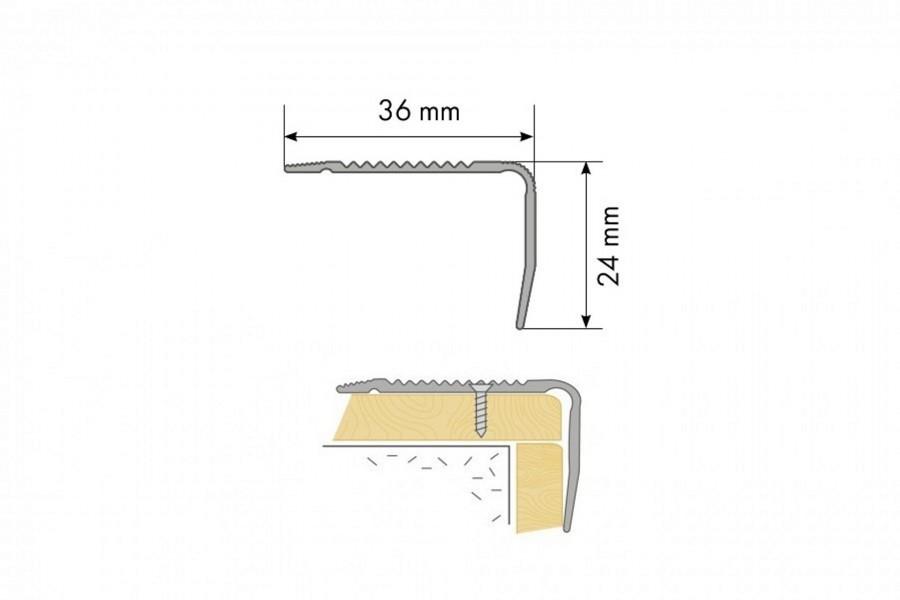 Stūra profils rievots 36x24mm, 1.1m, sudrabs
