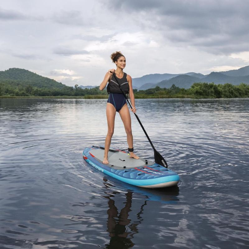 - Komplektā 3-daļīgs regulējams alumīnija airis (217 cm), pumpis ar manometru (ieteicamais spiediens 1.03 Bar), remonta komplekts un pārvadāšanas mugursoma