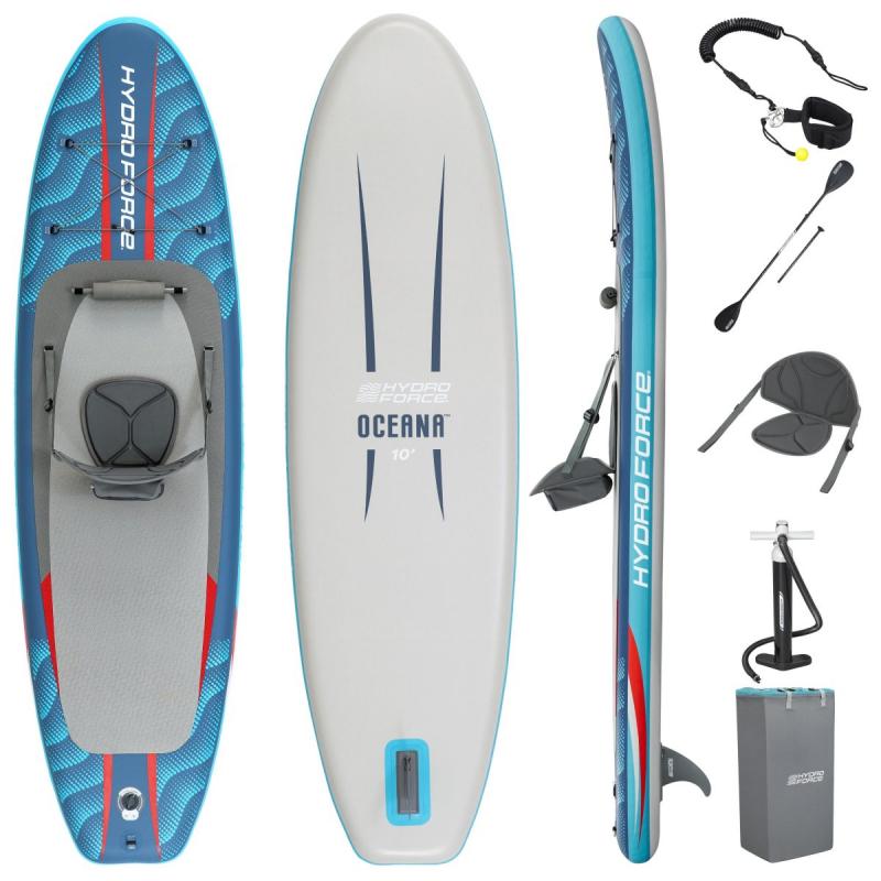 Hydro Force® Oceana™ SUP dēlis ar sēdvietu ir ideāls risinājums visiem, kas vēlas izbaudīt stabilu un izklaidējošu ūdens sportu. Ar 305 x 84 x 15 cm izmēriem, tas piedāvā lielisku līdzsvaru starp stabilitāti un manevrētspēju dažādos ūdeņos.