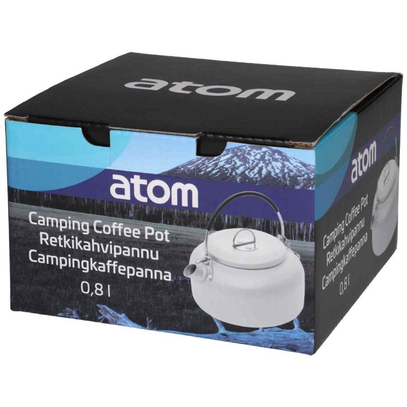 Atom tūrisma tējkanna ir īpaši viegla kafijas vai tējas kanna, izgatavota no anodēta alumīnija, kas padara to izturīgu pret koroziju un piemērotu lietošanai dažādos apstākļos visu gadu. Tās ietilpība ir 0.8 litri un svars tikai 0.14 kg, kas ir ideāli piemērots pārgājieniem, kempingam vai cita veida brīvdabas aktivitātēm. Kompaktie izmēri (14 x 15 x 8 cm) ļauj to ērti ievietot mugursomā. Tējkanna paredzēta tikai mazgāšanai ar rokām.