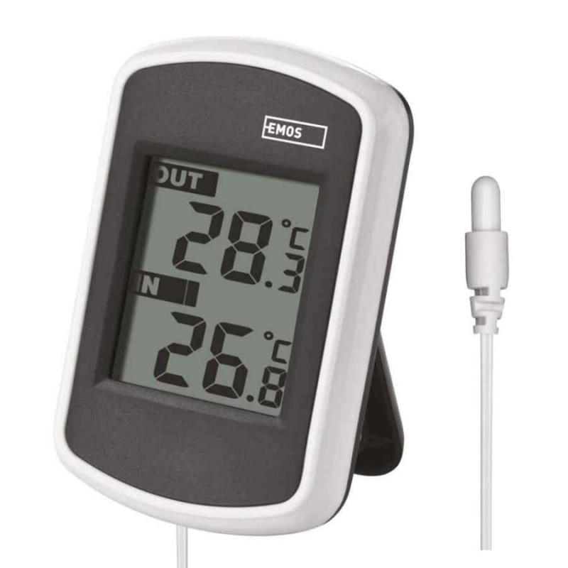 Emos digitālais termometrs E0041 ir paredzēts iekštelpu un āra temperatūras mērīšanai, izmantojot 2 metrus garu vadu sensoru. Tas nodrošina precīzus mērījumus ar 0.1 °C precizitāti un ir piemērots lietošanai mājās, ofisā vai siltumnīcā. Ierīcei ir kompakts dizains ar iespēju stiprināt pie sienas un tā darbojas ar 2 x AAA baterijām (nav iekļautas komplektā).