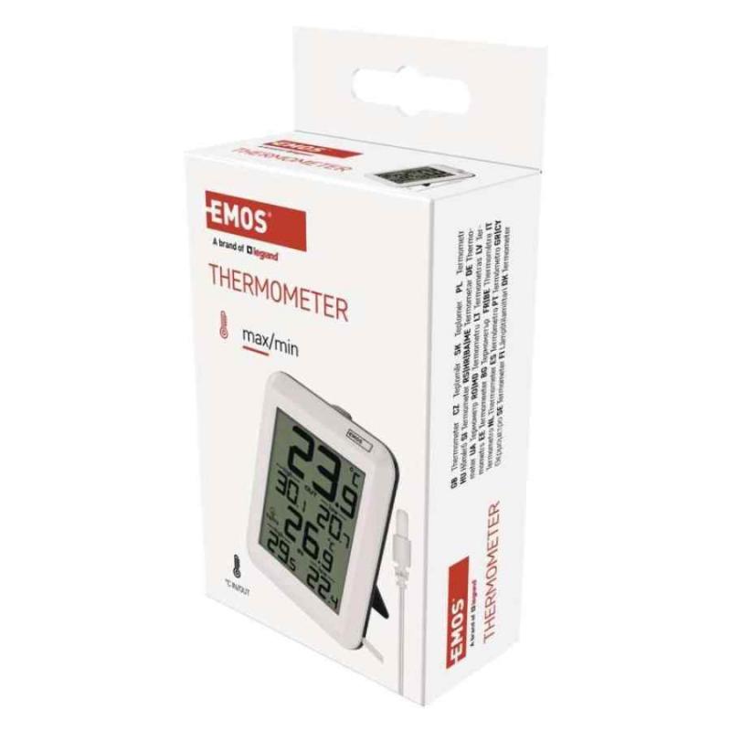 Emos digitālais termometrs E0422 ir vienkārša un precīza ierīce bez liekām funkcijām vai sarežģītiem iestatījumiem, kas paredzēta temperatūras mērīšanai iekštelpās un ārpus tām. Tas nepārtraukti reģistrē minimālās un maksimālās temperatūras vērtības ar 0.1 °C precizitāti, nodrošinot skaidru un uzticamu datu pārskatu. Elegants dizains ar lielu un viegli salasāmu displeju piemērots gan novietošanai uz plaukta, gan pie sienas, kas padara to par ērtu risinājumu ikdienas temperatūras uzraudzībai.