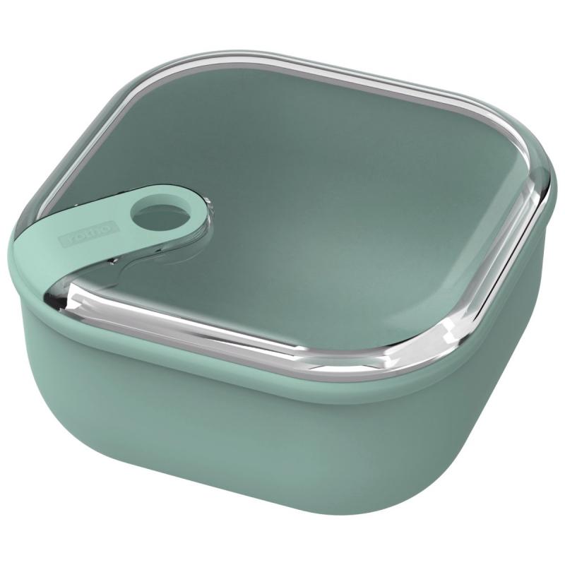 Rotho uzglabāšanas trauks Ela ir elegants un praktisks risinājums pārtikas uzglabāšanai un pārvadāšanai. Zaļā krāsā veidotais trauks ar caurspīdīgu vāku nodrošina ērtu satura pārskatāmību un piešķir virtuvei modernu akcentu. Inovatīvais aizvēršanas mehānisms ļauj ar vienu klikšķi hermētiski noslēgt trauku, padarot to 100% necaurlaidīgu un drošu šķidrumu pārvadāšanai. Trauks ir piemērots lietošanai mikroviļņu krāsnī bez vāka un viegli tīrāms trauku mazgājamajā mašīnā. Izgatavots no izturīgas, pārstrādājamas plastmasas. Izmērs 16 x 16 x 8.7 cm, tilpums 1 l.