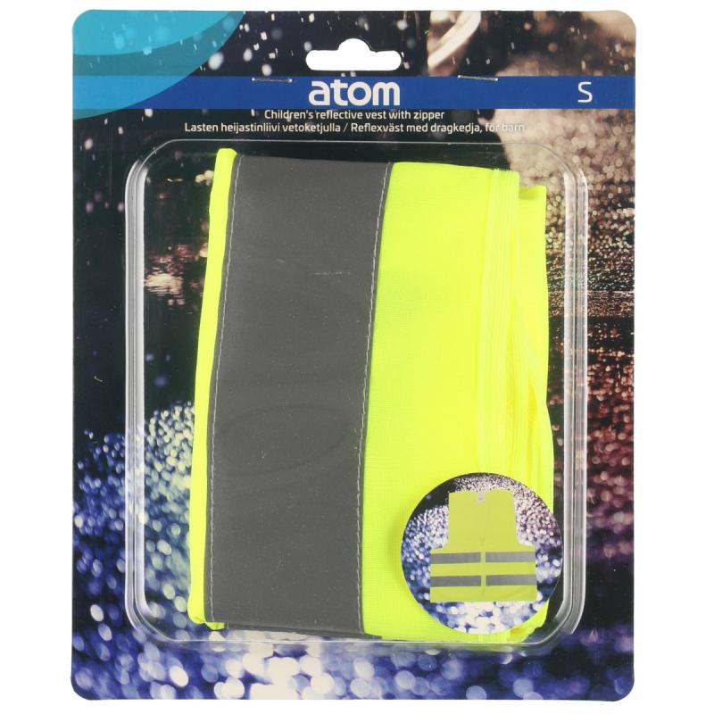 Atom atstarojošā drošības veste bērniem, kas nodrošina labu redzamību āra aktivitāšu un ikdienas pārvietošanās laikā. Veste ir izgatavota no viegla poliestera, aprīkota ar ērtu rāvējslēdzēju un to ir viegli uzvilkt un novilkt pat pašiem bērniem. Dzeltenā krāsa ar atstarojošām lentēm padara to labi pamanāmu diennakts tumšajā laikā. Sertificēta atbilstoši EN17343:2020 tipa B3 standartam, tā ir droša un uzticama izvēle bērnu drošībai uz ceļa vai rotaļās. Ideāli piemērota skolai, pārgājieniem vai velobraucieniem. Izmērs S (auguma garums 85 - 115 cm, krūšu apkārtmērs 52 - 57 cm).
